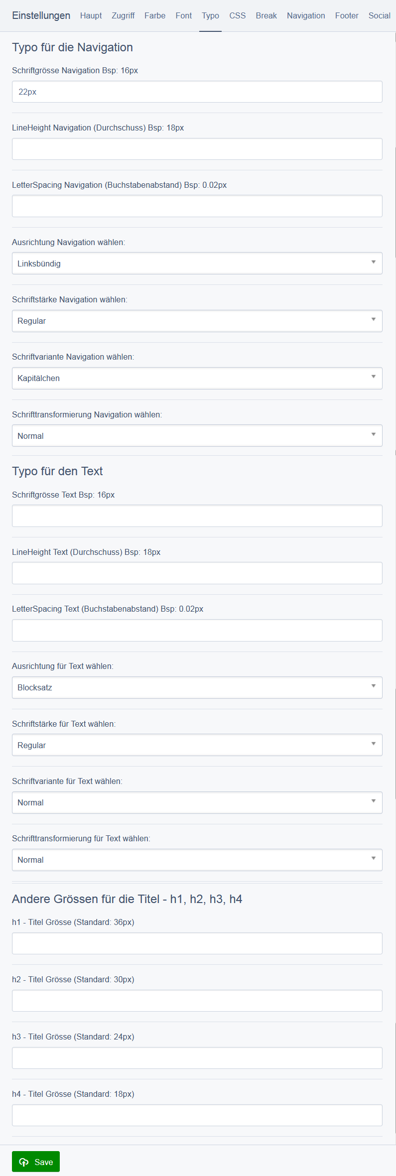 - LetterSpacing Titel (Buchstabenabstand) Bsp: 0.02px